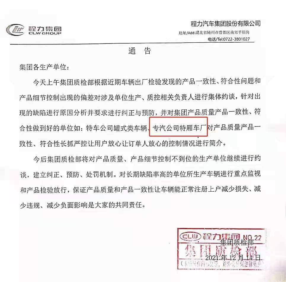 程力集團(tuán)質(zhì)檢部對湖北程力汽車亂象不一致性作出糾正處罰預(yù)防機(jī)制