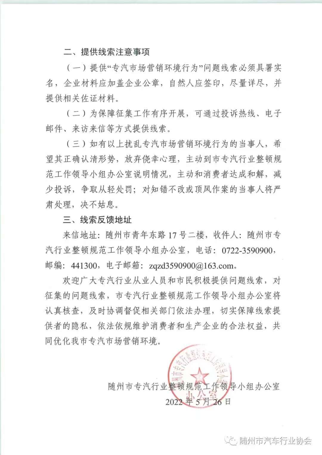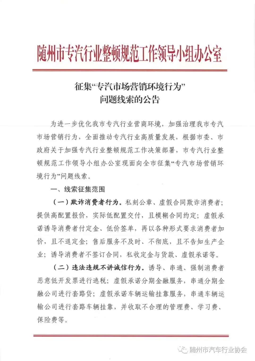 隨州市汽車(chē)行業(yè)協(xié)會(huì)關(guān)于整頓“隨州專(zhuān)汽市場(chǎng)營(yíng)銷(xiāo)環(huán)境行為”銷(xiāo)售欺詐投訴舉報(bào)公告