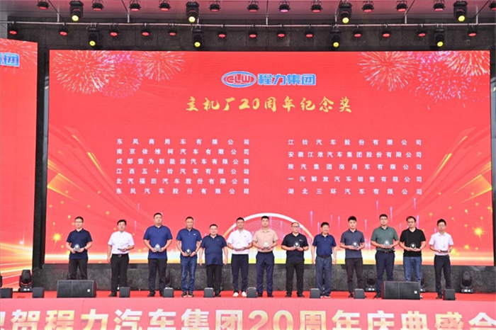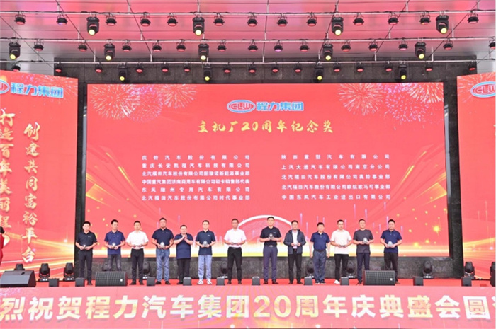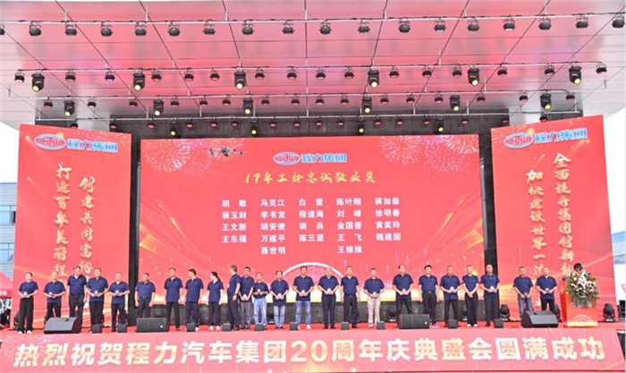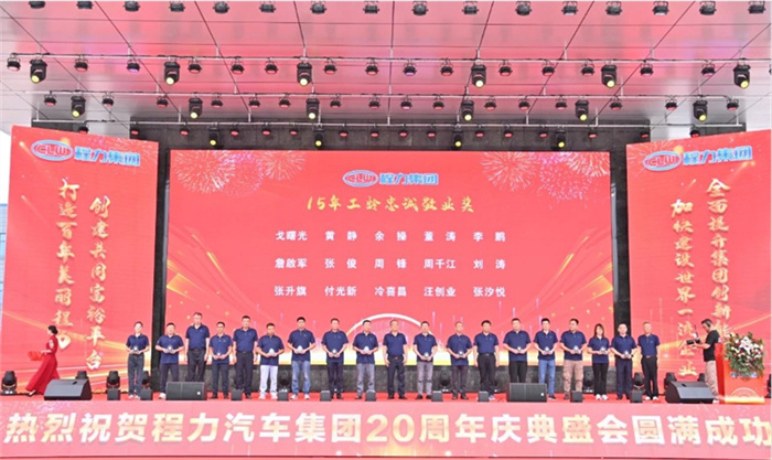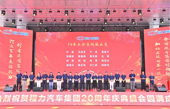 北汽福田汽車股份有限公司Y事業(yè)部總裁宋洋先生在致辭中,也全面回顧了福田與程力緊密合作的深厚友誼,對程力20年來的發(fā)展成就表示充分的肯定和由衷的贊許。北汽福田汽車股份有限公司助力程力在小卡、微卡實現(xiàn)行業(yè)引領,打造了標桿市場,市場份額達到70%,推動了細分市場的發(fā)展與創(chuàng)新;新冠疫情期間,江鈴汽車股份有限公司鼎力馳援、力保醫(yī)療救護車交付7000余臺,收到了國務院來信表揚。 江鈴汽車股份有限公司副總裁兼江鈴汽車銷售有限公司總經(jīng)理劉讓坡先生在致辭中,盤點了江鈴與程力兄弟般情誼的合作佳話。 除上述主機廠代表發(fā)言外,程力與一汽解放、東風商用車、安徽江淮、長安凱程、南京依維柯、陜汽集團、東風隨專、上汽大通、成都壹為、三環(huán)汽車等合作單位,先后聯(lián)袂打造了航天醫(yī)監(jiān)醫(yī)保車、應急救險車等眾多的成功合作案例,正是各位底盤合作單位的鼎力相助,我們將天馬行空的設計理念轉化為馳騁路面的各類專用車輛,讓每一款改裝作品都閃耀著獨特的光芒,成為行業(yè)內(nèi)的佼佼者。 襄陽達安汽車檢測中心有限公司副總經(jīng)理齊剛先生致辭。程力公司自建廠以來,與襄陽達安檢測中心展開合作。作為國家級的檢測機構,襄陽達安在公告、環(huán)保、營運等檢測認證,以及檢測場地、專家團隊等諸多方面,都給予了我們強有力的支持,特別是今年襄陽達安隨州專用汽車和應急裝備試驗場投入運營,更是助力隨州汽車企業(yè)的發(fā)展。程力一路走來,離不開襄陽達安的支持和幫助,在此對襄陽達安檢測中心表示衷心的感謝! 賡即,集團公司董事局主席程道國、董事長程阿羅向來自全國參加慶賀的主機廠代表贈予了程力20年“合作紀念獎”獎章。 程力汽車集團副總經(jīng)理倪文進(左)向檢測機構襄陽達安汽車檢測中心有限公司、中汽研汽車檢驗中心(武漢)有限公司代表,贈予了程力20年“合作紀念獎”獎章。 民族品牌,唱響世界。程力不僅是中國的程力,也是世界的程力;程力集團在湖北省建有五大核心制造基地,在立足本地的同時,我們用市外聯(lián)營模式走向全國走向世界,已成為行業(yè)的楷模和榜樣。這一成就典范的背后,離不開程力市外聯(lián)營單位的突出貢獻,我們的市外聯(lián)營合作伙伴,憑借出色的業(yè)務成果、創(chuàng)新的合作模式,以及深遠的對外影響力,在眾多單位中脫穎而出,程力集團總經(jīng)理朱武(右)向全國6家市外聯(lián)營單位的代表頒發(fā)了“程力20周年紀念獎”獎章。 程力集團銷售總公司常務副總經(jīng)理袁美玲(左)向全國共9家服務站及直營店代表頒發(fā)了“程力20年紀念獎”獎章。這些在奮戰(zhàn)銷售第一線的直營店,以及售后領域默默耕耘的服務站,他們用不懈的努力和專業(yè)的態(tài)度贏得了口碑,他們辛勤的付出,為程力產(chǎn)品的銷售與服務做出了巨大貢獻。 二十年比肩同行,二十年披星戴月,二十年同舟共濟,我們更要感恩程力專業(yè)廠、直屬廠的辛勤付出和默默奉獻。程力集團黨委書記袁昌才、總經(jīng)理朱武,為默默耕耘8年以上的生產(chǎn)經(jīng)營單位共負責人頒發(fā)了“程力20周年紀念獎”獎章。 集團公司的發(fā)展離不開最早的一批創(chuàng)業(yè)者,雖然他們已經(jīng)退休,但仍然無時無刻關注著集團的發(fā)展。他們在公司工作都超過15年,為集團的發(fā)展作出了巨大的貢獻,集團董事局常務副主席程國強為光榮退休忠誠敬業(yè)獎老員工頒發(fā)了獎章。 當我們攜起手來,總有溫暖的臂膀在支撐;一代一代程力人薪火相傳,兢兢業(yè)業(yè),開拓創(chuàng)新,奮發(fā)圖強,鑄就了今日輝煌,程力汽車集團公司為15年至18年工齡獲得忠頒發(fā)了誠敬業(yè)獎。 集團董事局常務副主席程國強、集團董事局副主席郭傳文、集團董事局副主席黃尚財、集團董事局委員廖明洲、集團董事局辦公室主任楊祖國為獲獎人員頒獎,并合影留念。 集團董事局主席程道國、集團董事長程阿羅為19年及20年工齡的忠誠敬業(yè)獎獲獎者頒獎,并合影留念。頒獎現(xiàn)場一陣陣熱烈的掌聲,表達了對程力忠誠敬業(yè)的員工們表示衷心的感謝,正是有了廣大員工在公司忠誠堅守,程力才有一代一代的賡續(xù)傳承和輝煌成就! 二十年來,程力堅持創(chuàng)新驅動,不斷推進技術進步和產(chǎn)品升級。從最初的單一產(chǎn)品,到如今涵蓋各類專用汽車、新能源汽車及關鍵零部件的完整產(chǎn)業(yè)鏈,程力汽車集團已成為國內(nèi)領先的綜合性汽車產(chǎn)業(yè)集團。為更好詮釋企業(yè)文化、企業(yè)發(fā)展方向,站在新的歷史起點上,讓企業(yè)品牌享譽世界,我們將發(fā)布程力集團的國際化品牌logo,有請程力汽車集團黨委書記袁昌才,帶領余操、呂仁波、廖朝鳳、陳垚東、梁沙艾、陳永有等6位國際貿(mào)易總公司銷售部負責人,共同點亮程力集團的全球化品牌logo。程力國際化品牌logo的發(fā)布,預示著程力國際化加快了步伐,程力必將成為一流的國際化公司和世界名牌企業(yè)。 程力人有擔當,初心不忘;民族品牌大國工匠,深耕沃土實干興邦。新廠歌,有力量,激勵我們奮發(fā)向上,攜手再創(chuàng)新輝煌。有請程力汽車集團黨委書記袁昌才,帶領集團副總經(jīng)理倪文濤、周厚山、劉峰,集團總經(jīng)
