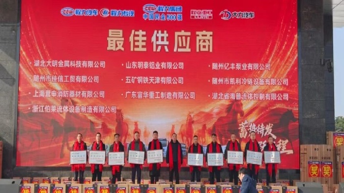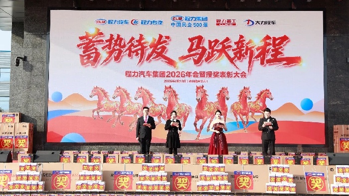 蓄勢(shì)待發(fā),馬躍新程----程力汽車(chē)集團(tuán)股份有限公司2026年會(huì)暨表彰大會(huì)圓滿(mǎn)舉行 “駿馬馳騁勇?tīng)?zhēng)先,蓄勢(shì)待發(fā)啟新程”,2026年新春將至,程力汽車(chē)集團(tuán)股份有限公司,于2月13日上午,在隨州總部程力大舞臺(tái)文化廣場(chǎng),以蓄勢(shì)待發(fā)馬躍新程為主題,隆重召開(kāi)年會(huì)暨表彰大會(huì),集團(tuán)公司2000余名獲獎(jiǎng)生產(chǎn)經(jīng)營(yíng)單位負(fù)責(zé)人、先進(jìn)工作者、示范標(biāo)兵、金牌跟單員、十大銷(xiāo)售體系團(tuán)隊(duì)獲獎(jiǎng)嘉賓、先鋒黨員、優(yōu)秀黨支部,以及員工代表歡聚一堂,回望耕耘、致敬榜樣、擘畫(huà)未來(lái),共赴嶄新征程。