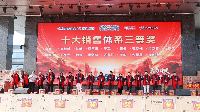 程力的每一步發(fā)展,都離不開(kāi)合作伙伴的鼎力支持與攜手同行。接下來(lái)頒發(fā)的是“最佳供應(yīng)商”獎(jiǎng)項(xiàng),此榮譽(yù)授予在物料品質(zhì)、交付效率、合作協(xié)同中表現(xiàn)優(yōu)異的合作伙伴,他們是程力產(chǎn)業(yè)鏈上的重要伙伴,更是集團(tuán)高質(zhì)量發(fā)展的堅(jiān)實(shí)后盾。 銷(xiāo)售與經(jīng)營(yíng)齊飛,服務(wù)攜創(chuàng)新共贏! 銷(xiāo)售與經(jīng)營(yíng)體系表彰重磅登場(chǎng)。從金牌跟單員到十大銷(xiāo)售體系各獎(jiǎng)項(xiàng),從經(jīng)營(yíng)激勵(lì)獎(jiǎng)、進(jìn)步獎(jiǎng)到貢獻(xiàn)獎(jiǎng),階梯式榮譽(yù)與豐厚獎(jiǎng)品——米家冰箱、空氣炸鍋、REDMI電視、筆記本電腦乃至出國(guó)游,充分彰顯集團(tuán)以績(jī)論獎(jiǎng)、重獎(jiǎng)功臣的鮮明導(dǎo)向,激勵(lì)全員勇攀業(yè)績(jī)高峰。