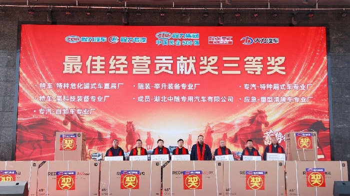董事局主席程道國(guó)先生作總結(jié)講話(huà),程主席回顧了程力發(fā)展征程,寄語(yǔ)全體同仁乘勢(shì)而上、策馬揚(yáng)鞭,以更昂揚(yáng)斗志深耕主業(yè)、開(kāi)拓創(chuàng)新,共筑程力發(fā)展新高度。講話(huà)期間,二等獎(jiǎng)、一等獎(jiǎng)抽獎(jiǎng)相繼揭曉,米家滾筒洗衣機(jī)等大獎(jiǎng)花落名家,將氛圍推向頂點(diǎn)。 歲序更新,華章再啟,展望2026年,我們程力人初心如磐,奮楫篤行;馬躍新程,未來(lái)可期。本次大會(huì)既是總結(jié)表彰的榮耀盛典,更是啟航新局的動(dòng)員令。全體程力人將以榜樣為力量,以戰(zhàn)略為指引,凝心聚力、勇毅前行,以實(shí)干書(shū)寫(xiě)2026新篇章,共赴程力集團(tuán)更輝煌的未來(lái)! 延展鏈接:2025年捷報(bào)頻傳碩果累累! 程力汽車(chē)集團(tuán)2025年專(zhuān)汽單項(xiàng)產(chǎn)值首次突破100億元大關(guān),出口創(chuàng)匯1億美金,上繳稅收超過(guò)一億元,在中國(guó)民企500強(qiáng)排名第320位,綜合實(shí)力顯著增強(qiáng)! 同時(shí),程力汽車(chē)集團(tuán)旗下子公司程力專(zhuān)用汽車(chē)股份有限公司“程力威”商標(biāo)品牌價(jià)值,被湖北省政府、省發(fā)改委、省經(jīng)信廳認(rèn)定全國(guó)首家專(zhuān)汽品牌價(jià)值達(dá)12.38億元;“集團(tuán)還同時(shí)擁有“大力”中國(guó)馳名商標(biāo)和“程力”湖北省優(yōu)勢(shì)商標(biāo)等知識(shí)產(chǎn)權(quán)無(wú)形資產(chǎn),知名品牌覆蓋了汽車(chē)整車(chē)、底盤(pán)、新能源車(chē)、汽車(chē)零部件等全鏈條關(guān)聯(lián)產(chǎn)業(yè)。 |
