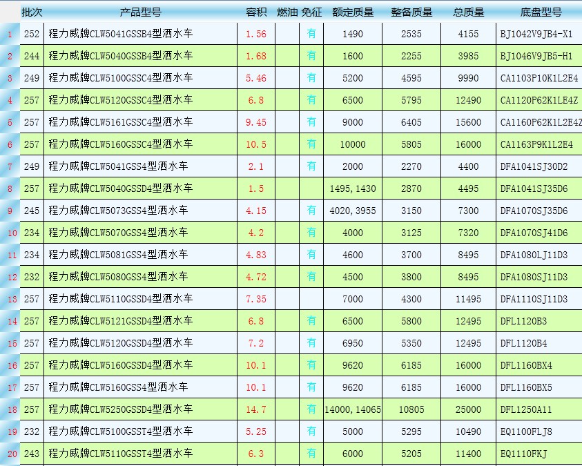 湖北程力國(guó)四灑水車(chē)公告有哪些型號(hào)