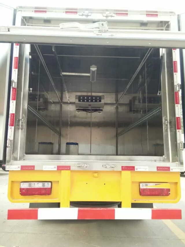 湖北程力東風(fēng)多利卡醫(yī)療廢物轉(zhuǎn)運(yùn)車(chē): 配備東風(fēng)多利卡經(jīng)典1730駕駛室,朝柴100馬力,2噸前橋,3.5噸后橋,萬(wàn)里揚(yáng)5檔變速箱,700鋼絲胎,氣剎,動(dòng)轉(zhuǎn),ABS。車(chē)廂為密閉式結(jié)構(gòu),內(nèi)腔材料為不銹鋼板,防銹、防水耐腐蝕、易清洗和。車(chē)廂內(nèi)部裝有低溫殺毒,紫外線殺毒,噴霧殺毒設(shè)備,可隨時(shí)對(duì)車(chē)廂內(nèi)部進(jìn)行。廂體兩側(cè)設(shè)有桶固定裝置,保證車(chē)輛緊急啟動(dòng)、停車(chē)或事故時(shí)廢棄物收集桶不會(huì)和翻轉(zhuǎn)。 湖北程力福田奧鈴醫(yī)療廢物轉(zhuǎn)運(yùn)車(chē):