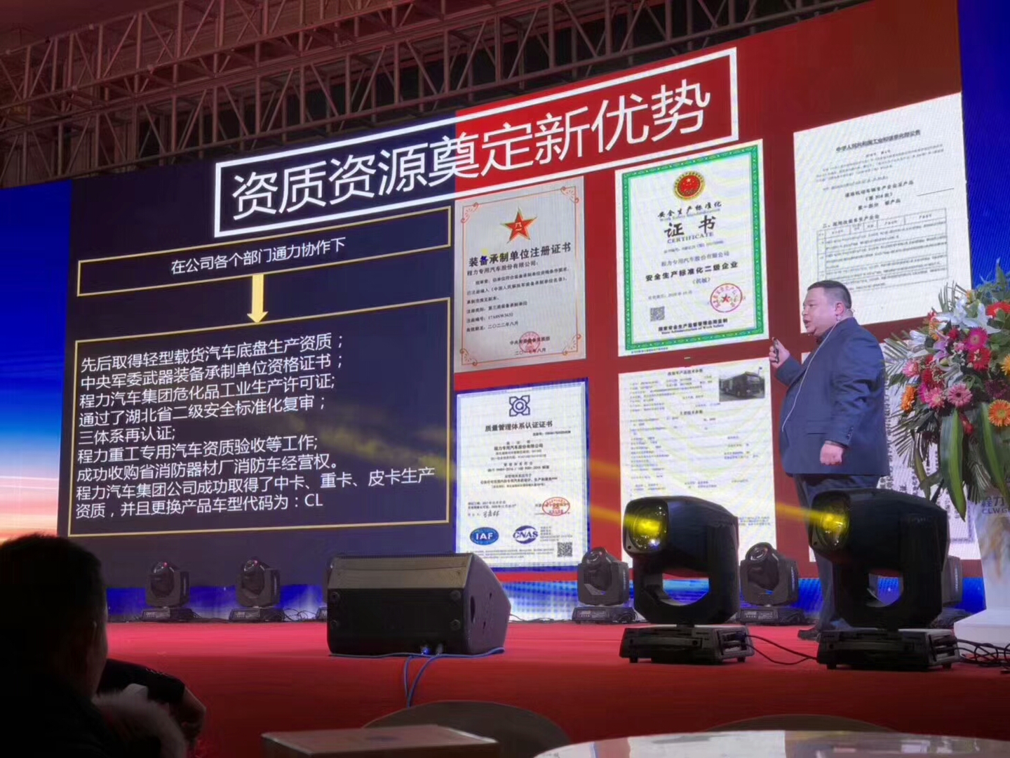 三、資質(zhì)資源奠定新優(yōu)勢: 在公司各個部門通力協(xié)作下,先后取得輕型載貨汽車底盤生產(chǎn)資質(zhì);中央軍委武器裝備承制單位資格證書;程力汽車就團;饭I(yè)生產(chǎn)許可證;通過了湖北省二級安全標(biāo)準復(fù)審;三體系在認證;程力重工專用汽車資質(zhì)驗收等工作;成功收購省消防器材廠消防車經(jīng)營權(quán);程力汽車集團公司成功取得了重卡、重卡資質(zhì),并且跟換產(chǎn)品車型代碼:CL