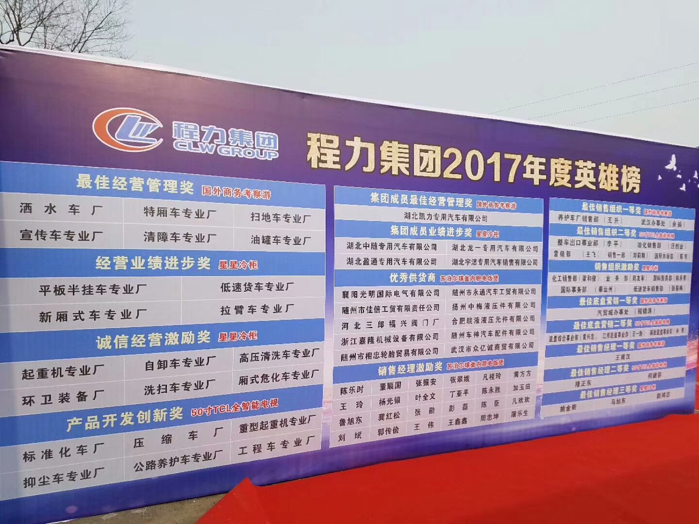 創(chuàng)新引領(lǐng)新作為,高質(zhì)促進新發(fā)展-湖北程力汽車集團2017年企業(yè)工作報告 今天,湖北程力汽車公司的新春年會,圓滿召開! 一、2017年湖北程力汽車公司取得的成績,生產(chǎn)各類專用汽車產(chǎn)值36億元,創(chuàng)造年產(chǎn)值增長10億的奇跡,回顧2017年展望2018年在新的一年里目標(biāo)是突破40億元邁向50億元。 自主創(chuàng)新開發(fā)新產(chǎn)品:環(huán)境監(jiān)測車、多功能抑塵造霧車、新能源皮卡汽車、輕量化鎂鋁合金罐式半掛車、奔馳威霆商務(wù)車、中置軸轎運車、高端清淤車、蓄能供熱車、清淤運輸車!