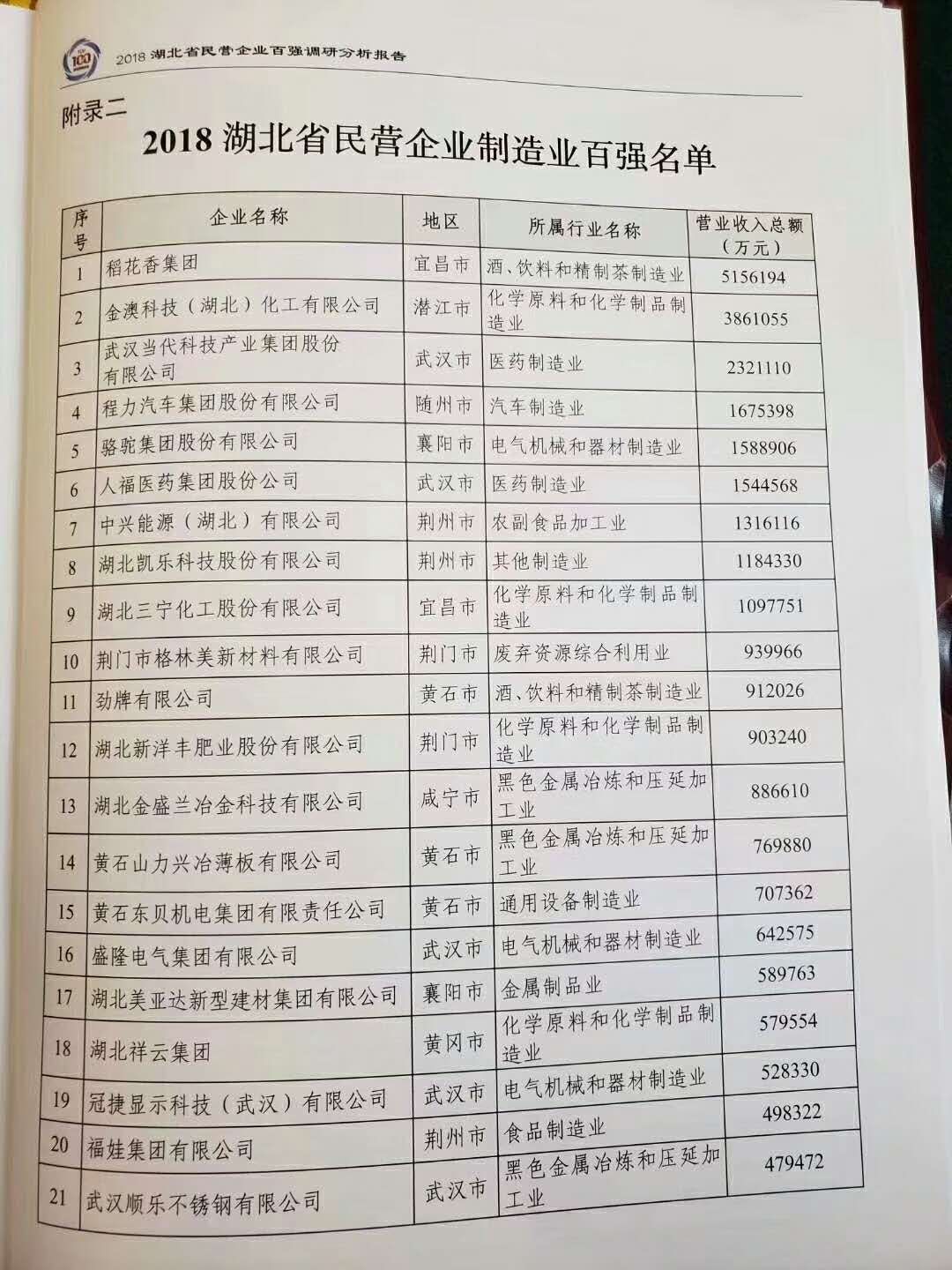 賀湖北程力汽車集團(tuán)榮譽(yù)排名湖北民營(yíng)制造業(yè)第四名