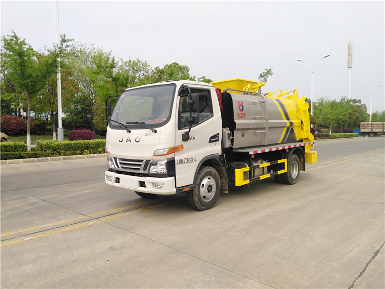 湖北程力國六江淮駿鈴5方餐廚垃圾車(方罐)程力威牌CLW5081TCAH6型餐廚垃圾車 廠家配置: 湖北程力國六江淮駿鈴6方餐廚垃圾車(方罐)底盤配置:江淮駿鈴V6駕駛室2071寬體,3365軸距,云內(nèi)德威163馬力D30TCIF2(120KW),六齒六檔變速箱,動轉(zhuǎn),中控鎖,電動玻璃,多功能方向盤,日間行車燈,空調(diào),斷氣剎,前橋3噸,后橋7.2噸,750R16LT 14PR鋼絲胎。 湖北程力國六江淮駿鈴6方餐廚垃圾車(方罐)改裝標(biāo)配:(1)弧形箱體,箱體材質(zhì)為4mm。(2)合肥皖液油泵,江蘇多路閥,國產(chǎn)液壓油缸。(3)推鏟卸料(不帶舉升功能),具有干濕分離功能。液壓后蓋,后蓋帶密封條。(4)后門液壓鎖緊。(5)拉桿式提升機(jī),掛240L標(biāo)準(zhǔn)塑料垃圾桶。進(jìn)料口蓋液壓開關(guān)。(6)駕駛室內(nèi)集中電控(提升機(jī)外部手動控制),后門鎖緊與后蓋開關(guān)的操作具有防誤操作。(7)箱體帶清洗裝置(液壓馬達(dá)帶動高壓泵、帶水箱) 湖北程力國六江淮駿鈴5方餐廚垃圾車(方罐)程力威牌CLW5081TCAH6型餐廚垃圾車圖片價(jià)格: