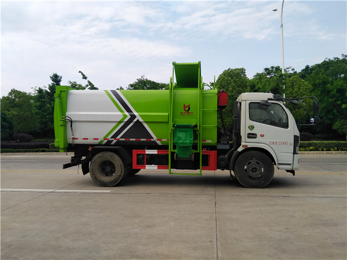 湖北程力國六東風大多利卡側(cè)裝掛桶自裝卸式垃圾車程力威牌CLW5122ZZZ6SL型自裝卸式垃圾車廠家配置: | 國六東風大多利卡側(cè)裝壓縮掛桶自裝卸式垃圾車底盤配置:采用東風原裝EQ1095SJ8CD2底盤,玉柴140馬力 (可選朝柴170、云內(nèi)150馬力),7.50R16鋼絲胎,氣剎,6檔變速箱 ,帶ABS,原裝空調(diào),電動玻璃,中控鎖。