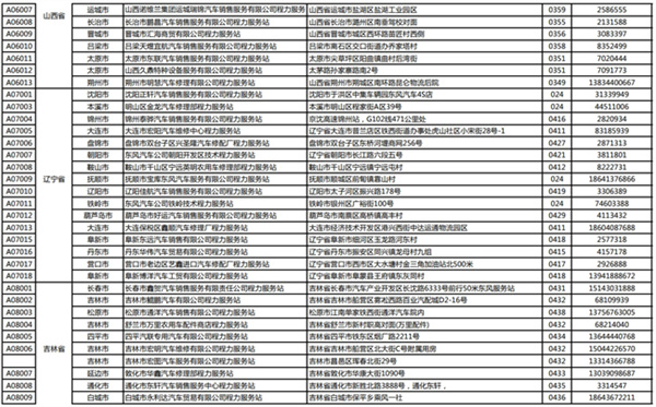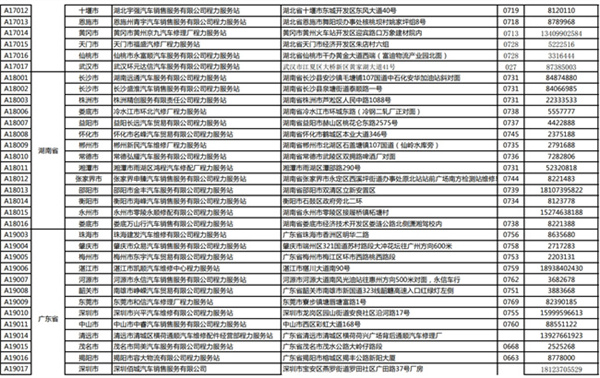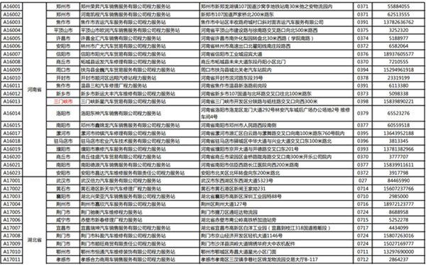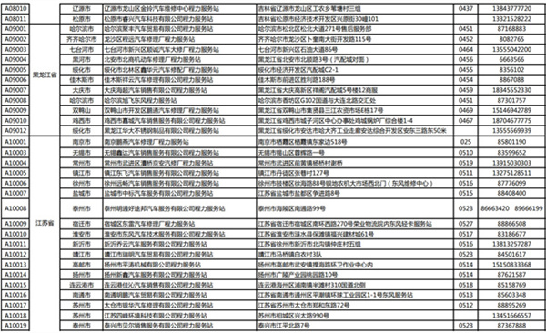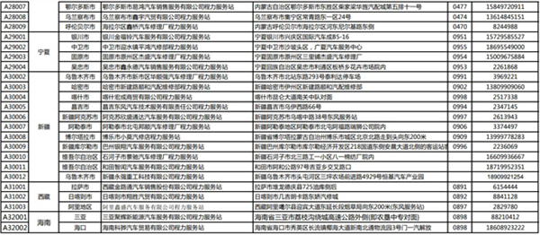 程力專用汽車股份有限公司(程力威)牌專用汽車全國服務站名錄
