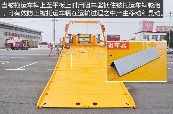 當被拖運車輛上至平板上時用阻車器抵住被托運車輛輪胎,可有效防止被托運車輛在運輸過程之中產(chǎn)生移動和晃動,設(shè)計合理使用方便,可以很好的保護被托運車輛;瑒酉尬,固定更精確,操作更簡便。