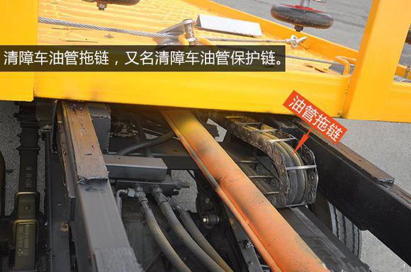 駕駛室左后方的平板上配備有一個4T液壓絞盤,出廠自帶25米鋼絲繩,鋼絲繩另外一端接有一個鋼鉤,便于拖車時進行牽引。