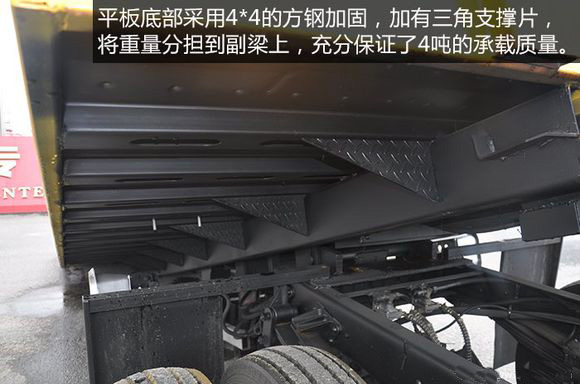 平板底部采用4*4的方鋼加固,加有三角支撐片,將重量分擔到副梁上,充分保證了4噸的承載質(zhì)量。