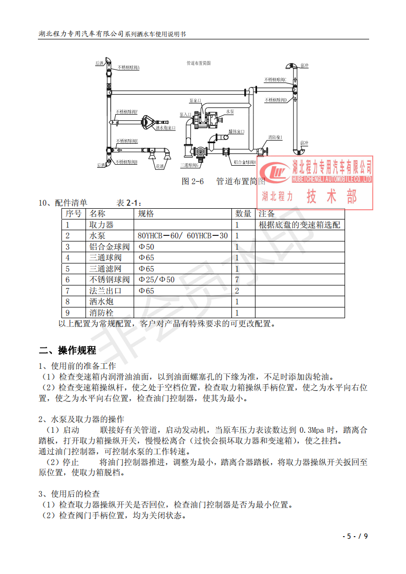 湖北程力灑水車操作說明書
