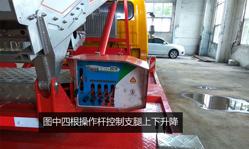 H型支腿操作桿,車板尾部兩邊的的四個操作桿控制支腿內(nèi)外伸縮。