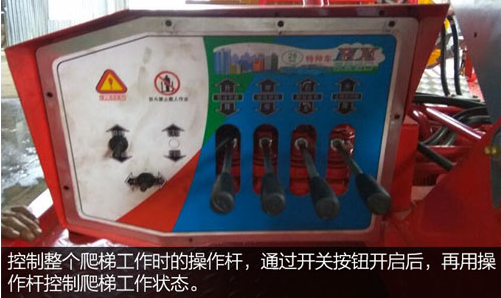 控制整個爬梯工作時的操作桿,通過開關(guān)按鈕開啟后,再用操作桿控制爬梯工作狀態(tài)。