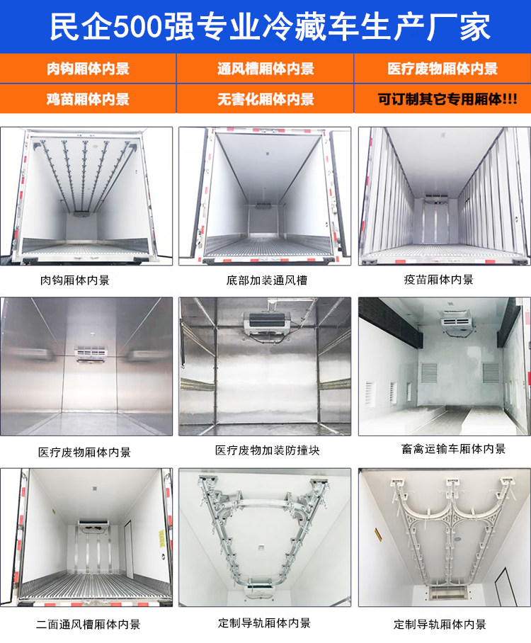 上裝配置: 箱體采用三明治結構,內外采用冷藏車專用玻璃鋼(可反射陽光可選用不銹鋼),中間保溫層采用聚氨酯發(fā)泡隔熱材料,18米罐注一次成型,產(chǎn)品重量輕,漏熱率(導熱系數(shù))低,強度高,保溫效果好,廂體美觀大方扎實耐用。廂體厚度8CM.廂體全為不銹鋼鎖件,鋁合金包角,廂體可選裝通風槽、開側門等。根據(jù)需要可選裝配國內外知名制冷機組(溫度達到保鮮或冷凍要求),可根據(jù)您的需求進行定制生產(chǎn)。 溫馨提示: 整車合格證、底盤合格證、全國統(tǒng)一機動車發(fā)票、隨車工具、車輛質保手冊、全國服務站點目錄。 底盤及冷藏機組全國聯(lián)保,全國各地均有保修點,冷機故障可在車輛所在地保修.