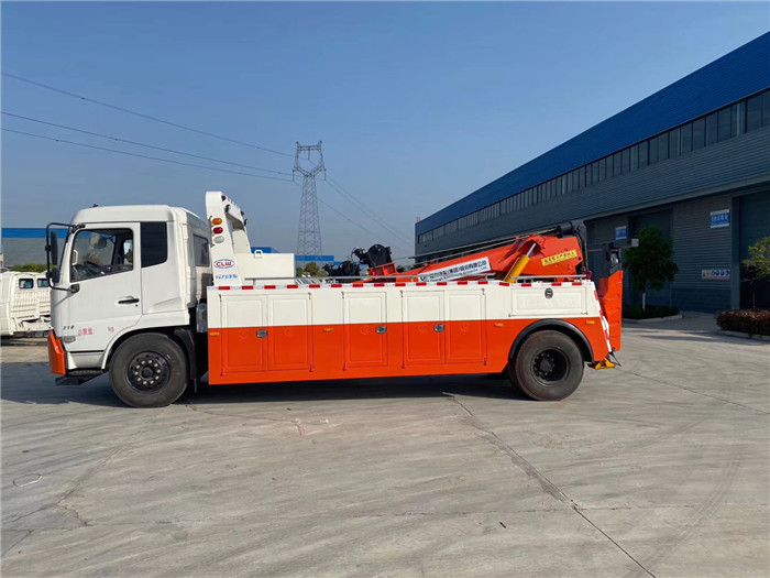 東風(fēng)天錦單橋拖吊聯(lián)體一拖一清障車配置: 采用康明斯210馬力,八檔箱,斷氣剎,空調(diào),ABS,電動(dòng)玻璃,中控門鎖,900R20鋼絲胎。 10噸上裝,聯(lián)體式上裝,二節(jié)式六邊型吊臂,三節(jié)托臂,分體式車廂,雙側(cè)聯(lián)動(dòng)操作裝置,兩個(gè)八噸液壓卷揚(yáng),三十五米鋼絲繩,直徑16MM,配四套鋼叉,一套拖叉套,一套鋼板吊耳拖叉,一套抱胎裝置,輔助燈一套,輔助氣管總成一套。 整車出具:底盤合格證、整車合格證、全國統(tǒng)一機(jī)動(dòng)車發(fā)票、隨車工具、車輛質(zhì)保手冊(cè)、全國服務(wù)站點(diǎn)目錄等。 湖北程力國六東風(fēng)天錦托吊連體清障車程力威牌CLW5188TQZD6型清障車多方位圖片價(jià)格: