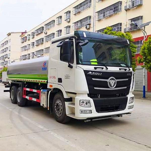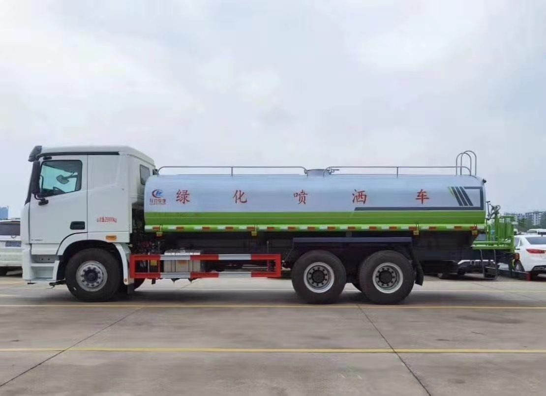 湖北程力國六歐曼后雙橋18-20方綠化噴灑車(灑水車)程力威牌CLW5250GPSBDP型綠化噴灑車廠家配置: 湖北程力國六福田歐曼GTL后雙橋20噸灑水車底盤配置:采用福田歐曼后雙橋原裝底盤,福田歐曼GTL豪華駕駛室,4400+1350mm軸距,搭載國六(國Ⅵ)東風(fēng)康明斯260馬力柴油發(fā)動(dòng)機(jī),功率191kw,國六排放,陜齒法士特八檔變速箱,11.00R20鋼絲胎,前橋5T,后橋雙10T,方向助力,斷氣剎,排氣制動(dòng),原裝空調(diào),行駛記錄儀,多媒體顯示屏,電動(dòng)門窗,中控鎖,氣囊座椅,ABS。 湖北程力國六福田歐曼GTL后雙橋20方灑水車專用配置:罐體容積:18立方米,罐體鋼板為5mm碳鋼Q235材質(zhì)專用容積板一次成型,罐內(nèi)隔板具有防波作用,以減輕汽車行駛時(shí)罐體液體沖擊;配大功率專用灑水泵,泵可自吸自排;整車前沖、后灑、側(cè)噴、后平臺(tái)帶綠化灑水炮,灑水炮可全方位旋轉(zhuǎn),可連續(xù)調(diào)成直沖狀、大雨、小雨、毛毛雨;前封頭帶水位計(jì),后平臺(tái)主管路帶1寸澆花接口,后爬梯,帶1個(gè)消防接頭,帶1個(gè)自流閥,1個(gè)過濾裝置。