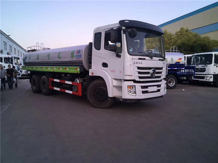 湖北程力國六東風(fēng)錦程V6后雙橋18噸灑水車程力威牌CLW5253GPSD6型綠化噴灑車廠家配置: | 湖北程力國六東風(fēng)錦程V6后雙橋18噸灑水車底盤配置:采用東風(fēng)后雙橋原裝底盤,東風(fēng)錦程齊星軍工V6四點(diǎn)懸浮駕駛室,4350+1350mm軸距,搭載國六(國Ⅵ)東風(fēng)康明斯230/260馬力柴油發(fā)動(dòng)機(jī),功率169/191kw,國六排放,陜齒法士特八檔變速箱,11.00R20鋼絲胎,前橋5T,后橋雙10T,方向助力,斷氣剎,排氣制動(dòng),原裝空調(diào),行駛記錄儀,多媒體顯示屏,電動(dòng)門窗,中控鎖,氣囊座椅,ABS。湖北程力國六東風(fēng)錦程V6后雙橋18噸灑水車專用配置:罐體容積:19立方米,罐體鋼板為4mm碳鋼Q235材質(zhì)專用容積板一次成型,罐內(nèi)隔板具有防波作用,以減輕汽車行駛時(shí)罐體液體沖擊;配大功率專用灑水泵,泵可自吸自排;整車前沖、后灑、側(cè)噴、后平臺(tái)帶綠化灑水炮,灑水炮可全方位旋轉(zhuǎn),可連續(xù)調(diào)成直沖狀、大雨、小雨、毛毛雨;前封頭帶水位計(jì),后平臺(tái)主管路帶1寸澆花接口,后爬梯,帶1個(gè)消防接頭,帶1個(gè)自流閥,1個(gè)過濾裝置。湖北程力國六東風(fēng)錦程V6后雙橋18噸灑水車選裝配置:1、可選裝氣動(dòng)球閥開關(guān)駕駛室內(nèi)控制; 2、可選裝后平臺(tái)帶CLW-30、40型霧炮機(jī)組