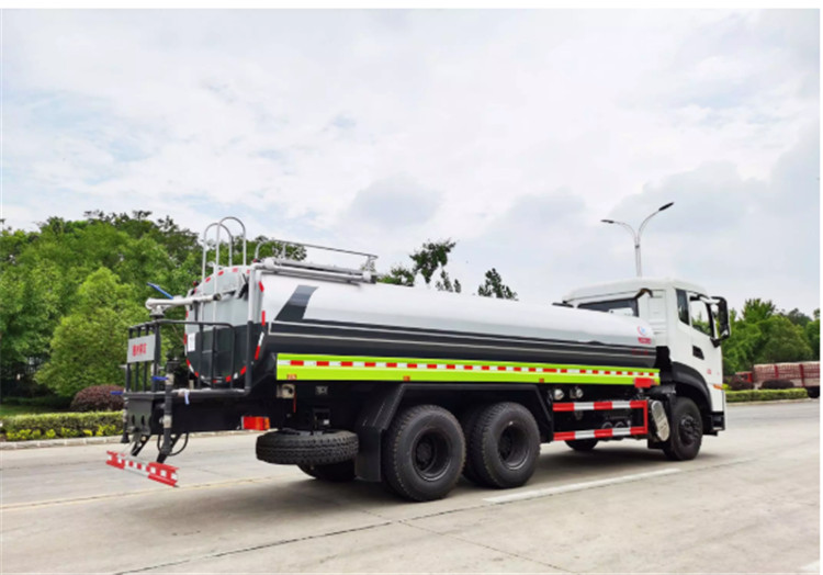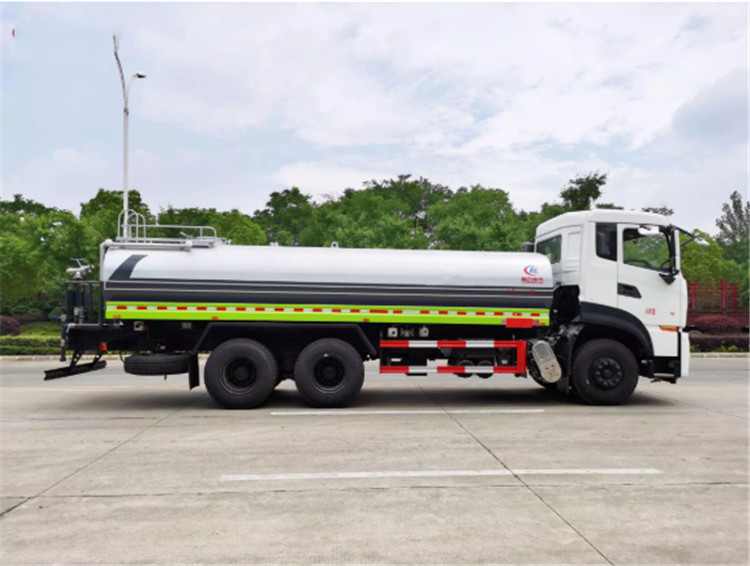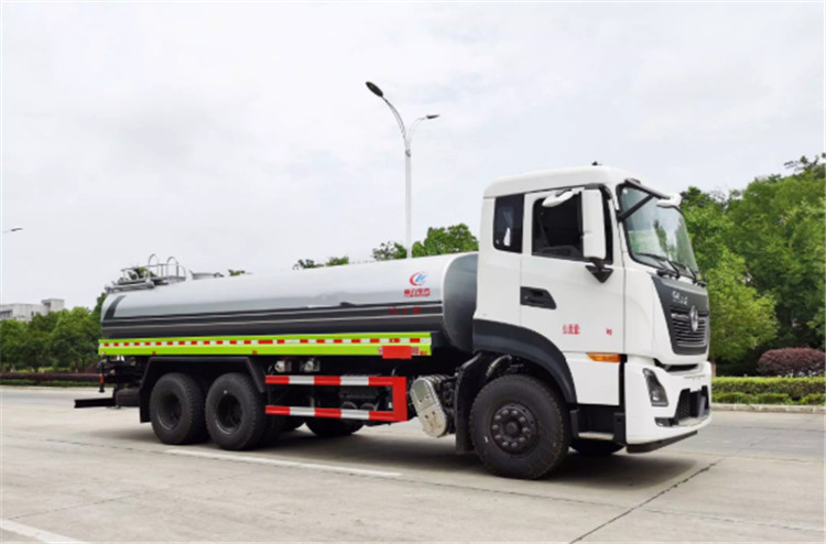 東風(fēng)天龍KL/VL后雙橋灑水車是一款采用國六排放標(biāo)準(zhǔn)東風(fēng)天龍后雙橋原裝底盤改裝的環(huán)衛(wèi)車,該車配置豪華,駕乘舒適,該車罐體容積:18立方米,標(biāo)配前沖、后灑、側(cè)噴、后平臺高炮,是園林綠化、小區(qū)物業(yè)、公路養(yǎng)護的常用車型。 國六東風(fēng)天龍后雙橋18方高端灑水車(綠化噴灑車)底盤配置:采用東風(fēng)天龍后雙橋原裝底盤,東風(fēng)天龍豪華駕駛室,4400+1350mm軸距,搭載國六(國Ⅵ)東風(fēng)康明斯290馬力柴油發(fā)動機,功率213kw;東風(fēng)商用DDi350馬力柴油發(fā)動機,功率257kw,國六排放,陜齒法士特9檔變速箱,11.00R20鋼絲胎/295真空胎,前橋5T,后橋雙10T,方向助力,斷氣剎,排氣制動,原裝空調(diào),行駛記錄儀,多媒體顯示屏,電動門窗,中控鎖,氣囊座椅,ABS。 國六東風(fēng)天龍后雙橋18方高端灑水車(綠化噴灑車)專用配置:罐體容積:18立方米,罐體鋼板為4mm碳鋼Q235材質(zhì)專用容積板一次成型,罐內(nèi)隔板具有防波作用,以減輕汽車行駛時罐體液體沖擊;配大功率專用灑水泵,泵可自吸自排;整車前沖、后灑、側(cè)噴、后平臺帶綠化灑水炮,灑水炮可全方位旋轉(zhuǎn),可連續(xù)調(diào)成直沖狀、大雨、小雨、毛毛雨;前封頭帶水位計,后平臺主管路帶1寸澆花接口,后爬梯,帶1個消防接頭,帶1個自流閥,1個過濾裝置。