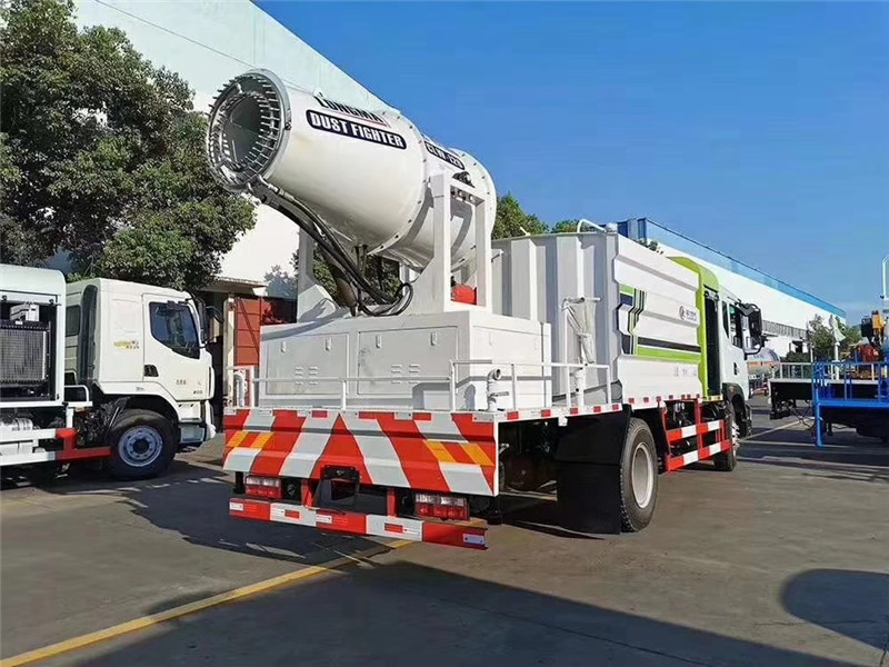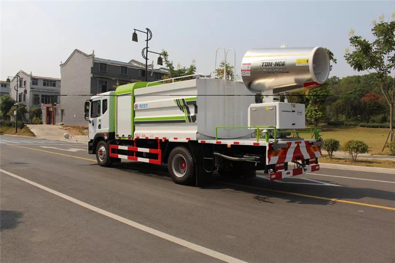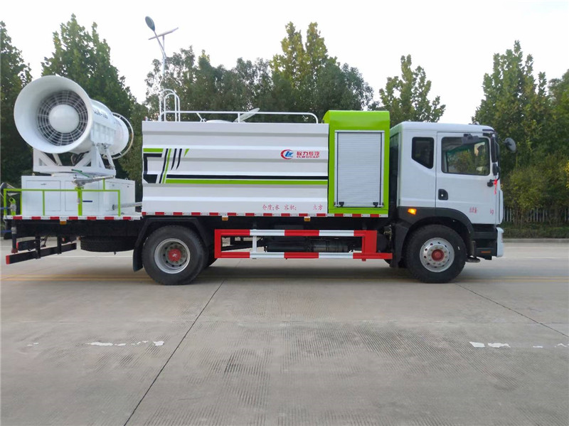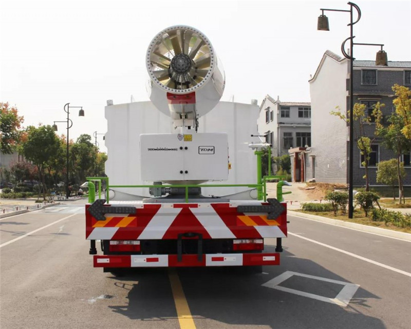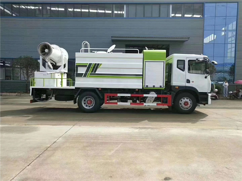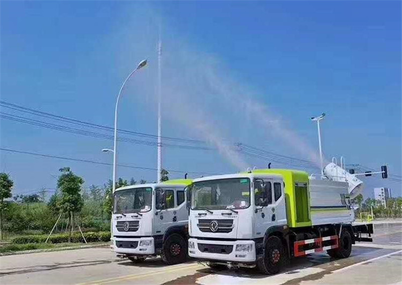 底盤配置:采用國(guó)六東風(fēng)新款多利卡D9系列底盤生產(chǎn),軸距4500mm,底盤發(fā)動(dòng)機(jī)為康明斯230馬力,295真空胎,東風(fēng)6檔變速箱,國(guó)六排放標(biāo)準(zhǔn),罐體容積:10立方,罐體鋼板采用Q235碳鋼鋼板,采用方形瓦楞設(shè)計(jì),外觀大氣靚麗,后工作平臺(tái)加裝高效率車載式風(fēng)送噴霧機(jī),噴藥炮霧化效果好,可遠(yuǎn)程噴霧,東風(fēng)多利卡D9抑塵車帶前沖后灑、側(cè)噴、平臺(tái)高炮、自流閥及消防接頭各1個(gè)、標(biāo)配億豐泵或金龍泵,可選裝50-100米噴霧機(jī)。 上裝配置:罐體容積10立方,罐體為方形罐,罐體內(nèi)部做防腐,主管路鍍鋅,帶前部沖洗路面噴灑裝置、后部扇形降塵噴灑裝置,兩側(cè)面噴灑裝置,帶后部工作平臺(tái)、平臺(tái)上安裝綠化灑水炮(炮噴射形狀可調(diào)),可調(diào)直沖狀、大雨、中雨、毛毛雨,可連續(xù)調(diào)節(jié),采用中聯(lián)唯佳大流量水泵,消防接口可自流,音樂喇叭,50-100米噴霧機(jī)組。 噴霧機(jī)配置:TDM-M08型,可無線操作,及手動(dòng)操作。根據(jù)需求選配的霧炮機(jī)霧化距離在60-120米不等(靜風(fēng)室內(nèi)距離),實(shí)際射程:(霧化射程會(huì)受濕度、溫度、風(fēng)速等各方面天氣因素的影響,另外天氣干燥地區(qū)一部分在空中被蒸發(fā)掉)。CLW-100型60米,副發(fā)電機(jī)組功率50(Kw),風(fēng)機(jī)功率15(Kw),不銹鋼多級(jí)離心泵功率5.5(Kw)。100米無線操作,霧化距離60米(靜風(fēng)室內(nèi)距離)實(shí)際射程:(霧化射程會(huì)受濕度、溫度、風(fēng)速等各方面天氣因素的影響,另外天氣干燥地區(qū)一部分在空中被蒸發(fā)掉)。 湖北程力國(guó)六東風(fēng)D9方罐抑塵車程力威牌CLW5180TDYD6型多功能抑塵車圖片價(jià)格: